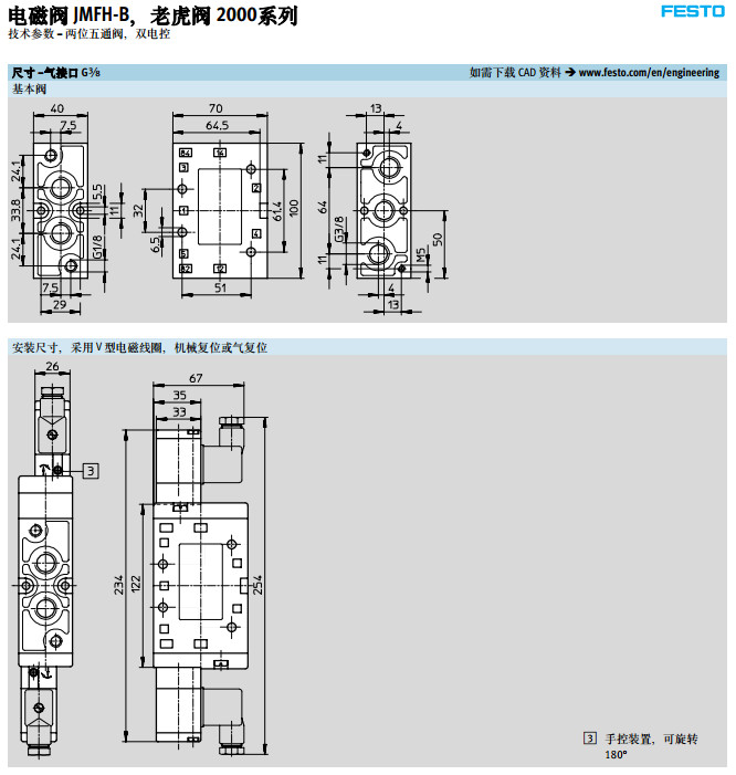 型號: JMVH-5-1/8-B,JMVH-5-1/4-B,JMVH-5-3/8-B,festo電磁閥