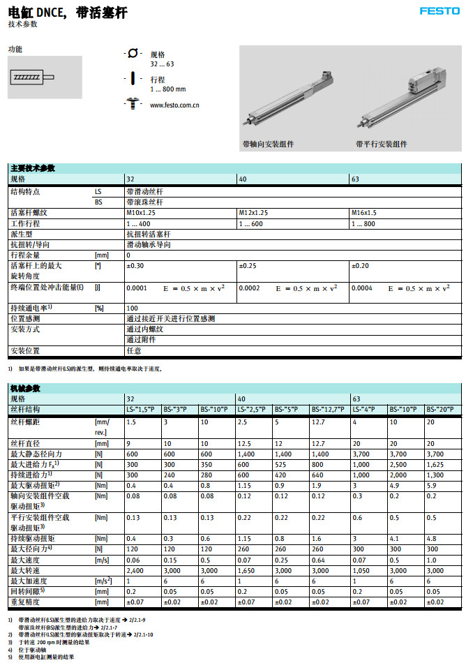 DNCE-32-100,DNCE-32-200,DNCE-40-100,DNCE-40-200,festo電缸 |