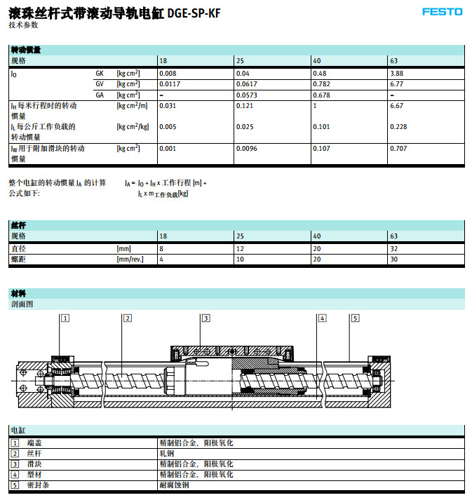 DGE-18-500-SP,DGE-25-500-SP,DGE-40-500-SP,DGE-63-500-SP,festo絲桿式電缸