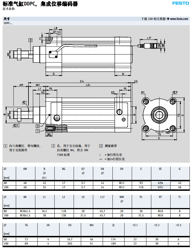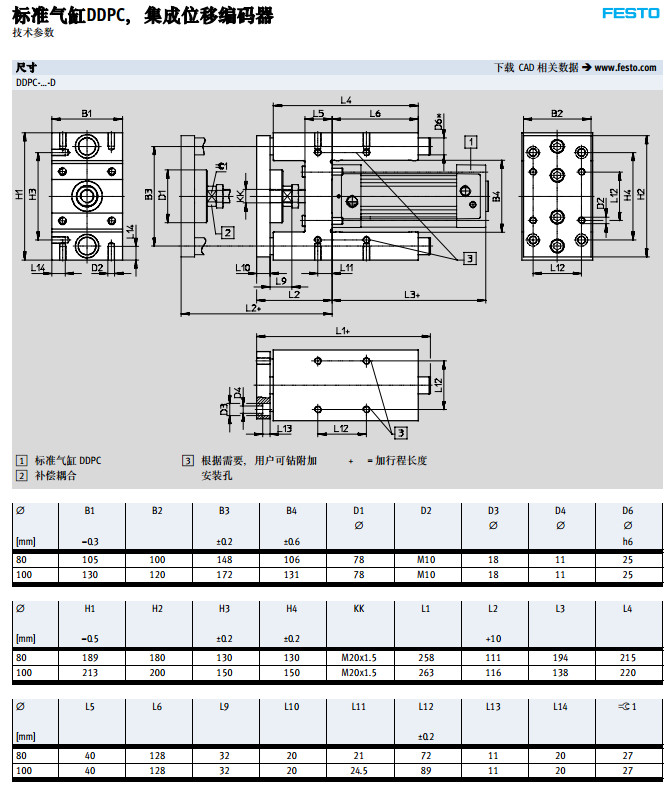 型號(hào): DDPC-Q-80-100-D-C-T-P-A,DDPC-Q-100-100-D-C-T-P-A,festo標(biāo)準(zhǔn)氣缸
