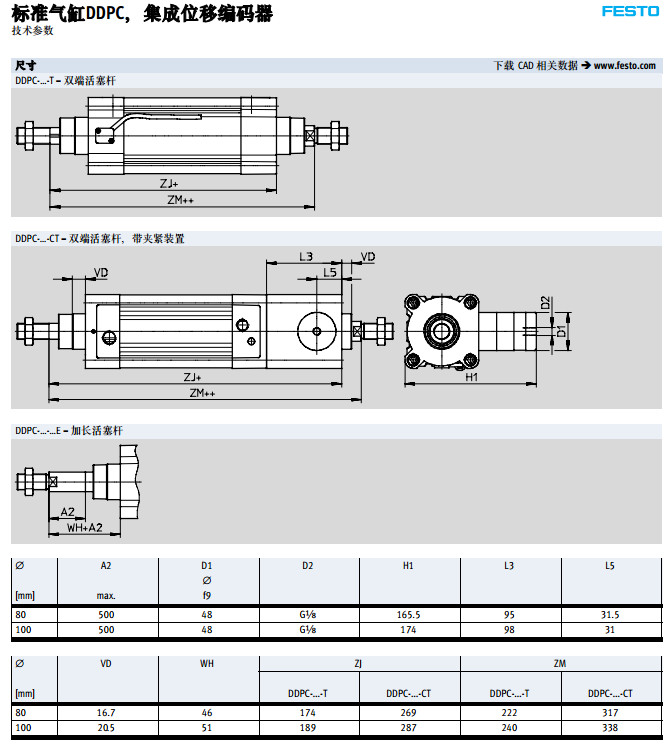 DDPC-Q-80-100-D-C-T-P-A,DDPC-Q-100-100-D-C-T-P-A,festo標(biāo)準(zhǔn)氣缸