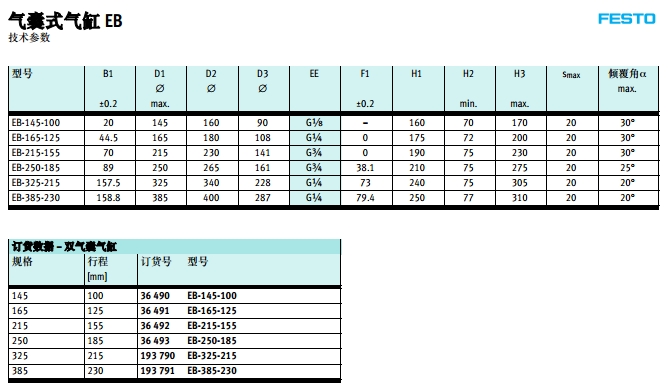 EB-145-60,EB-165-65,EB-215-80,EB-250-85,EB-325-95,EB-385-115,festo氣囊式氣缸