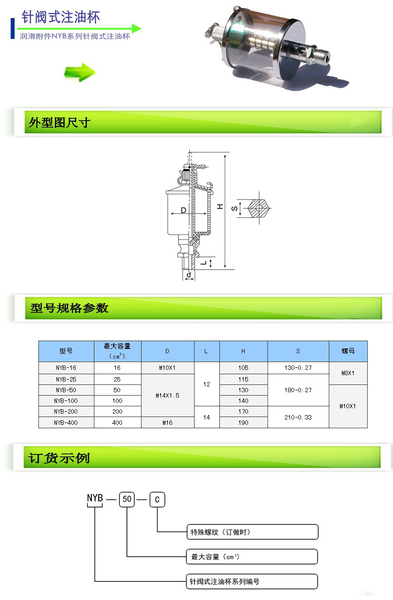 詳細(xì)信息 NYB-16,NYB-25,NYB-50,NYB-100,NYB-200,NYB-400,針閥式注油杯