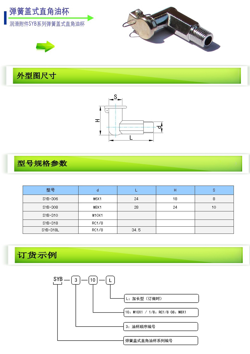 SYB-306,SYB-308,SYB-310,SYB-318,SYB-318L,彈簧蓋式直角油杯