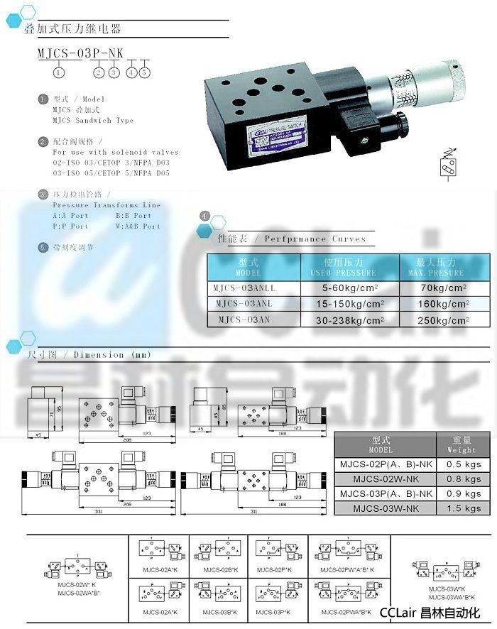 MJCS-03ANLL,MJCS-03ANL,MJCS-03AN,MJCS-02W-NK,MJCS-03W-NK,疊加式壓力繼電器