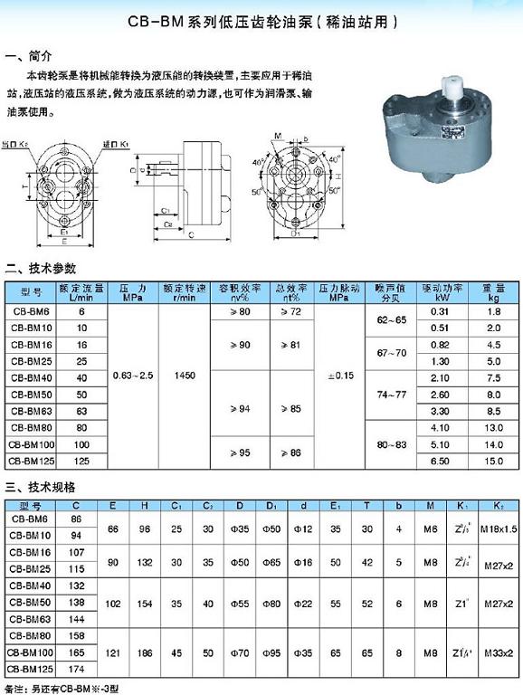 CB-BM6,CB-BM10,CB-BM16,CB-BM25,CB-BM40,CB-BM50,CB-BM63,CB-BM80,CB-BM100,CB-BM125,齒輪泵