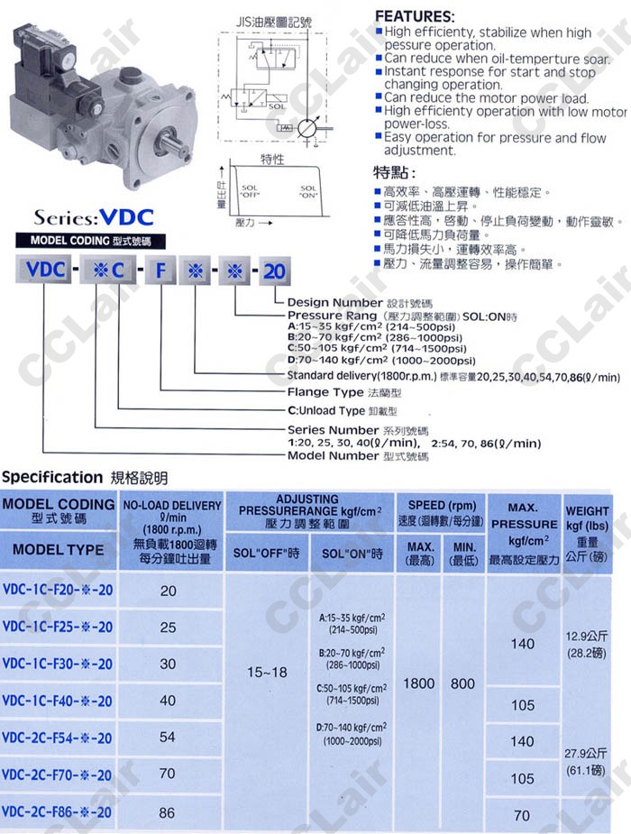 型號: VDC-1C-F20-A-20,VDC-2C-F25-B-20,VDC-1C-F30,VDC-1C-F40,VDC-1C-F54,VDC-1C-F70,VDC-1C-F86,