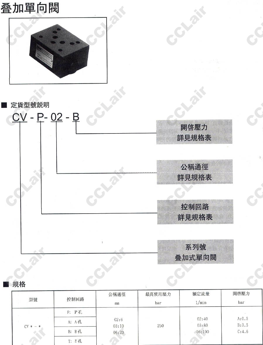 CVP-02-A,CVP-03-B,CVP-06-C,CVA-02-A,CVA-03-B,CVB-06-A,CVT-02-A,CVT-03-C,疊加式順序閥
