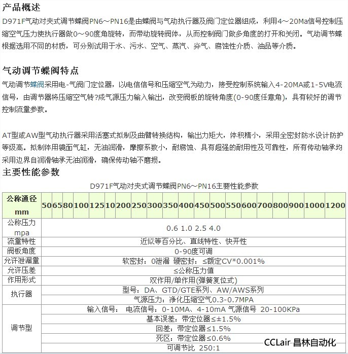 詳細(xì)信息 D971F-6,D971F-10,D971F-25,D971F-40,氣動(dòng)對夾式調(diào)節(jié)蝶閥