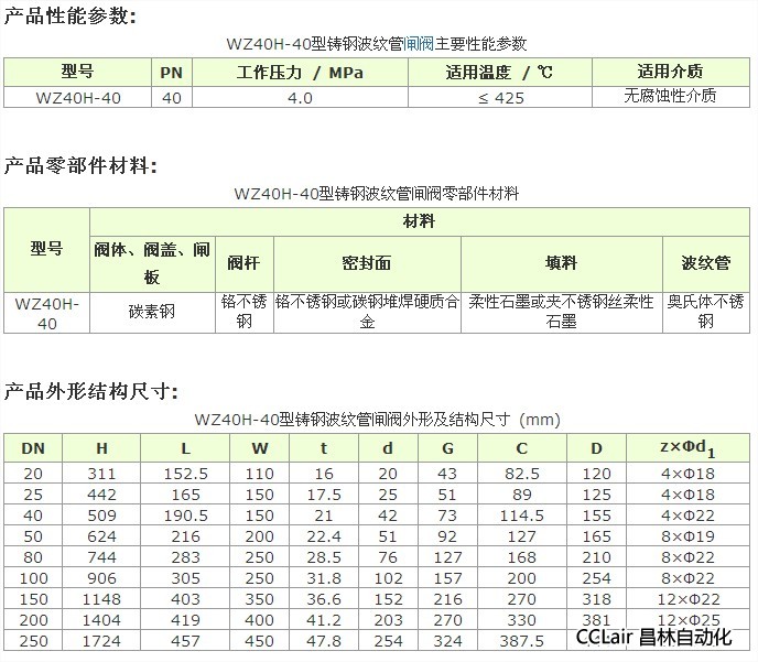 詳細信息 WZ40H-40,鑄鋼波紋管閘閥