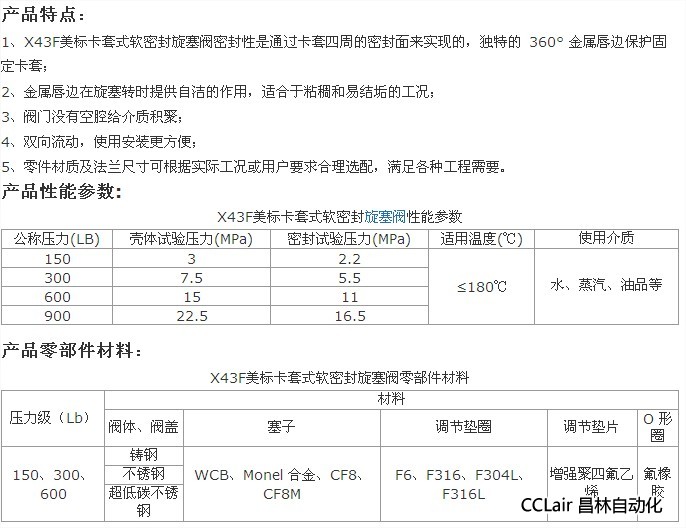 X43F-150(LB),X43F-300(LB),X43F-600(LB),X43F-900(LB),美標(biāo)卡套式軟密封旋塞閥