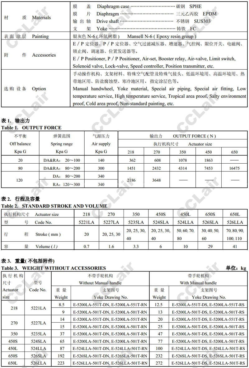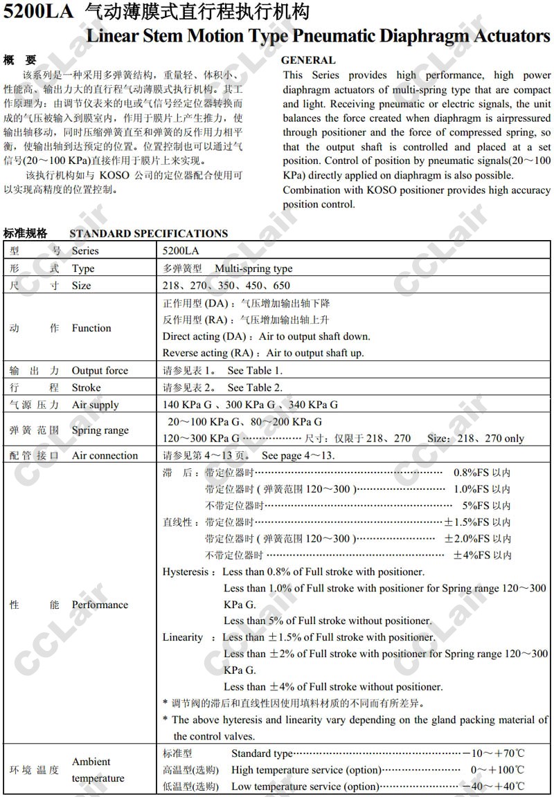 詳細(xì)信息 5221LA,5227LA,5235LA,524SLA,524LLA,526SLA,526LLA,氣動薄膜式直行程執(zhí)行機(jī)構(gòu)