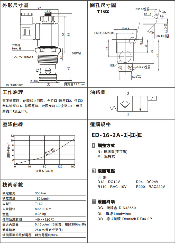 ED-16-2A-M-R110-DR,ED-16-2A-M-D24-DR,ED-16-2A-M-R220-DR,兩通常閉型電磁換向閥