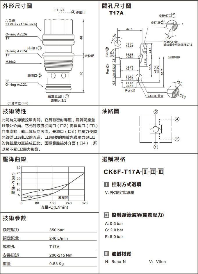 CK6F-T17A-VAN,CK6F-T17A-VCN,CK6F-T17A-VEN,CK6F-T17A-VAV,CK6F-T17A-VCV,CK6F-T17A-VEV,導(dǎo)壓開單向閥(外部導(dǎo)壓口)