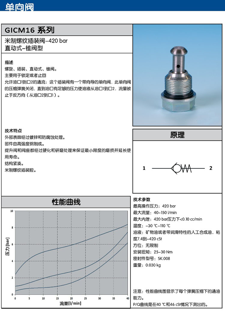 GICM16,單向閥