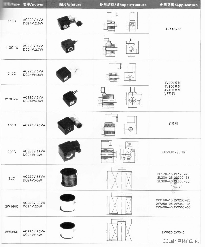 110C,110C-W,210C,210C-W,160C,200C,2LC,2W160C,2W025C,線圈