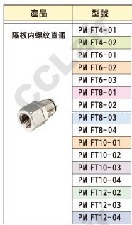 PMFT4,PMFT6,PMFT10,PMFT12,PMFT8-04,PMFT4-01,PMFT10-01,PMFT6-03,PMFT12-04,國鷹KUOIN隔板內(nèi)螺紋直通接頭