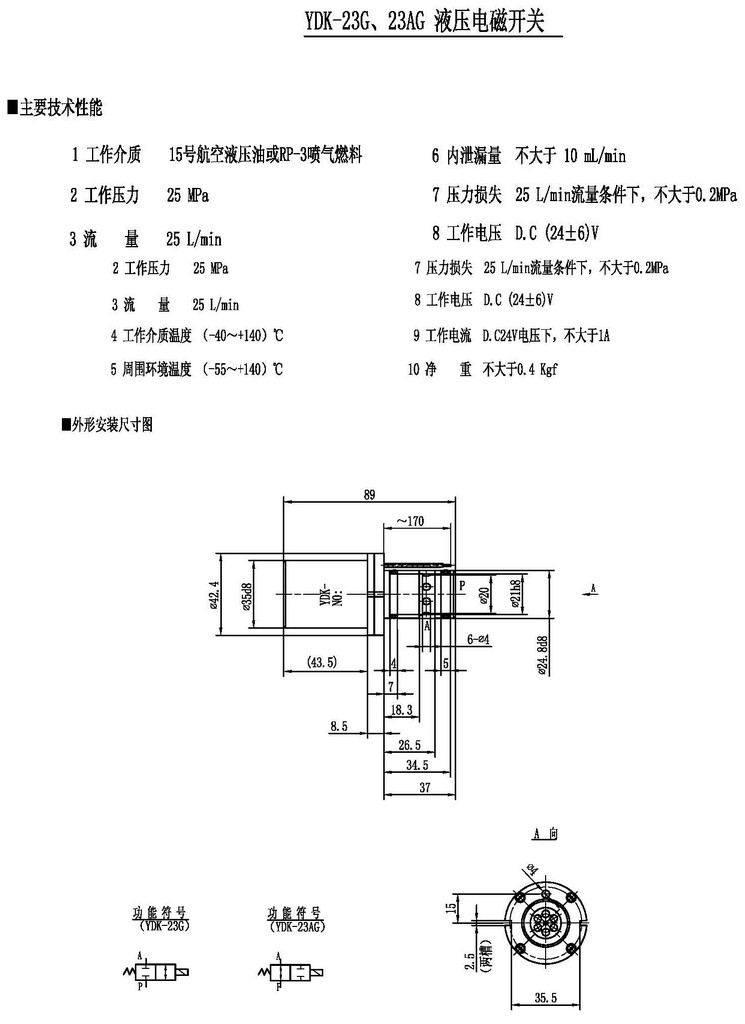 YDK-23G,YDK-23AG,液壓電磁開關(guān)