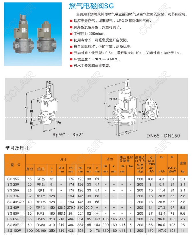 SG15R,SG20R,SG25R,SG32R,SG40/32R,SG40R,SG50R,SG65F,SG80F,SG100F,燃氣電磁閥
