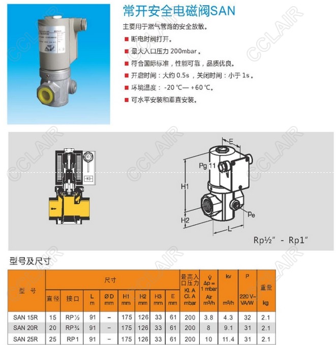 SAN15R,SAN20R,SAN25R,常開安全電磁閥