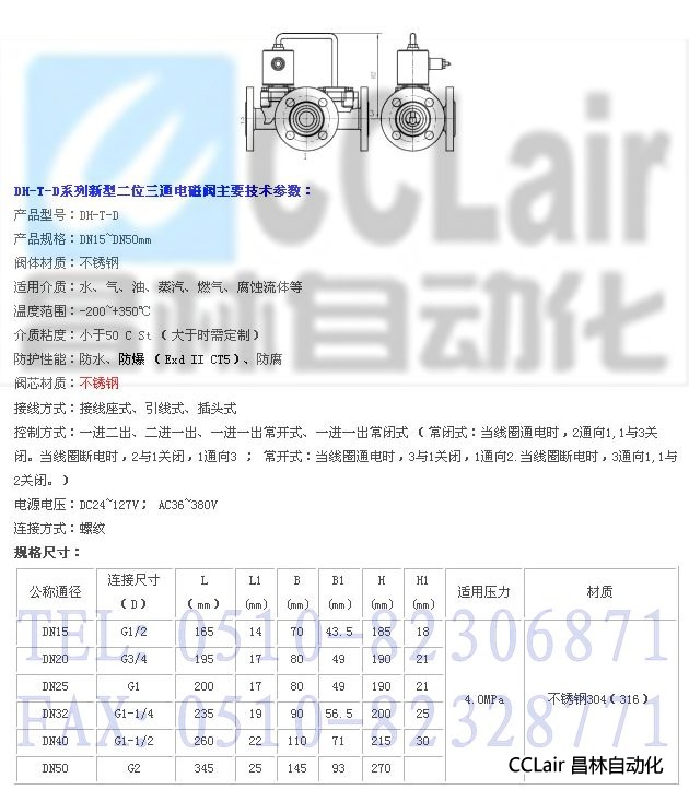 DH-T-D15,DH-T-D20,DH-T-D25,DH-T-D32,DH-T-D40,DH-T-D50,二位三通電磁閥
