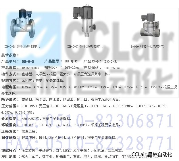 DH-Q-B15,DH-Q-B20,DH-Q-B25,DH-Q-B32,DH-Q-B40,DH-Q-B50,帶手動控制電磁閥