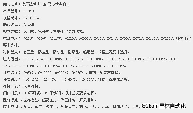 DH-P-D10,DH-P-D12,DH-P-D15,DH-P-D20,DH-P-D25,高壓法蘭式電磁閥