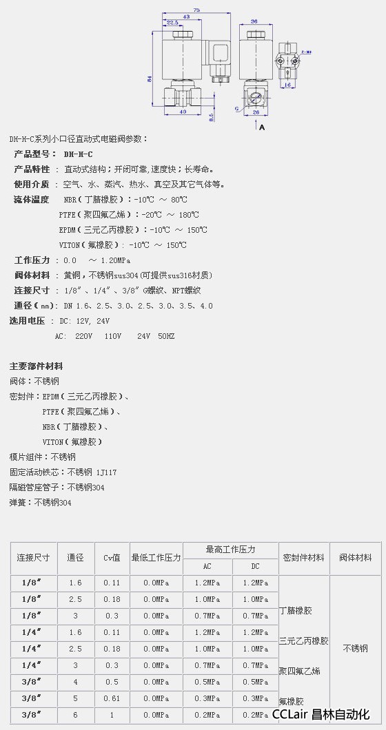 DH-H-C1.6,DH-H-C2.5,DH-H-C3,DH-H-C4,DH-H-C5,DH-H-C6,直動式電磁閥
