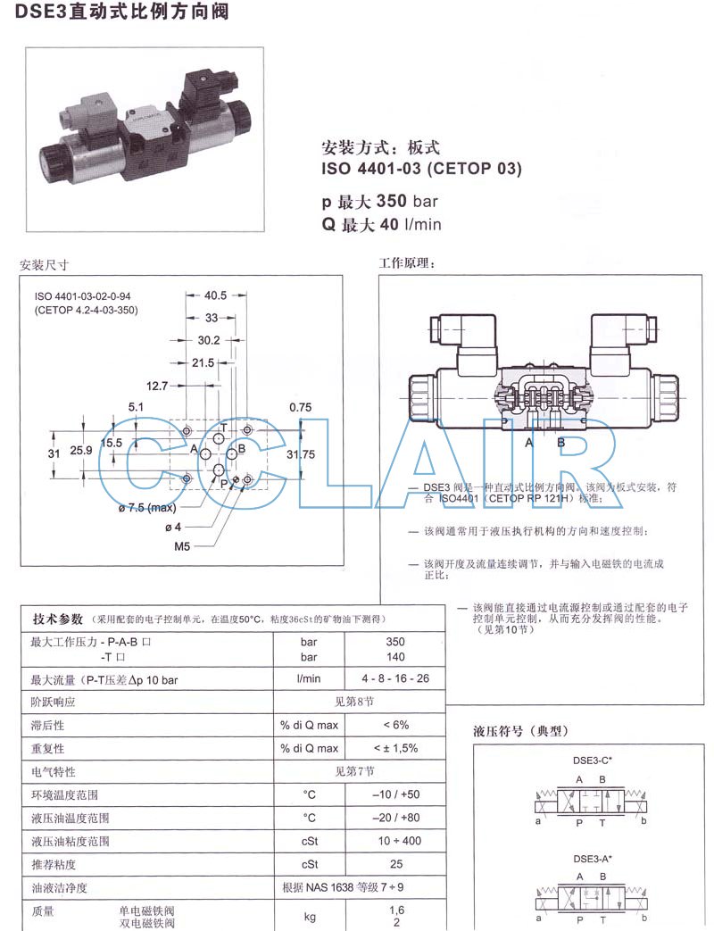 詳細信息 DSE3,DSE3-A08/10N-D24K1, DSE3-A16/10N-D24K1,DSE3-A26/10N-D24K1, 直動式比例方向閥