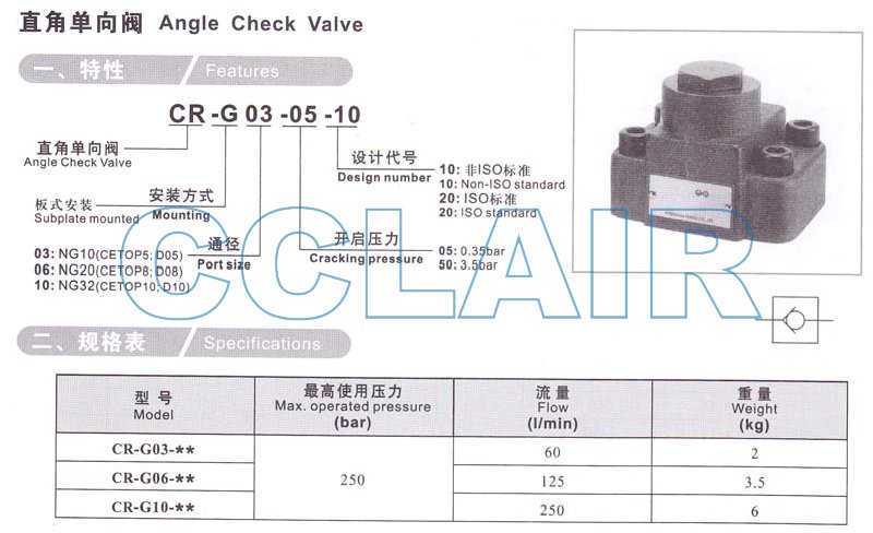 詳細(xì)信息 CR-G03-05-10,CR-G03-50-10,CR-G06-05-10,CR-G06-50-10,CR-G10-05-10,CR-G10-50-10,直角單向閥