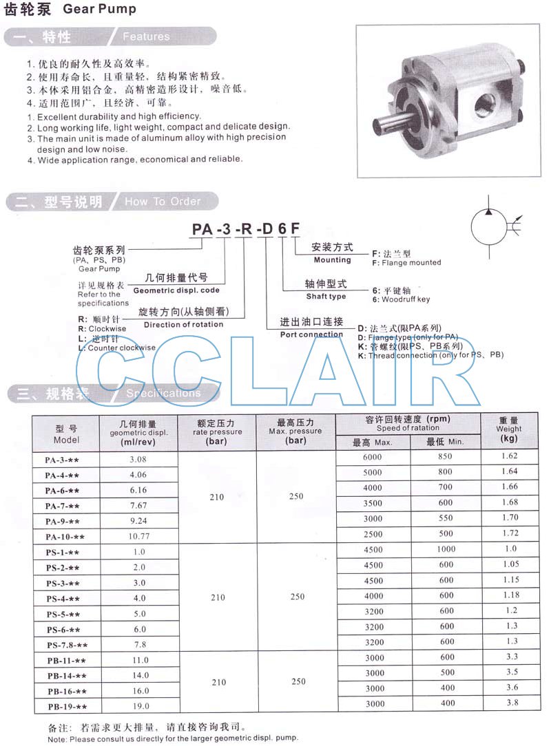 PA-3,PA-4,PA-6,PA-7,PA-9,PA-10,PS-1,PS-2,PS-3,PA-3-R-D6F,PA-4-R-D6F,PA-6-R-D6F齒輪泵
