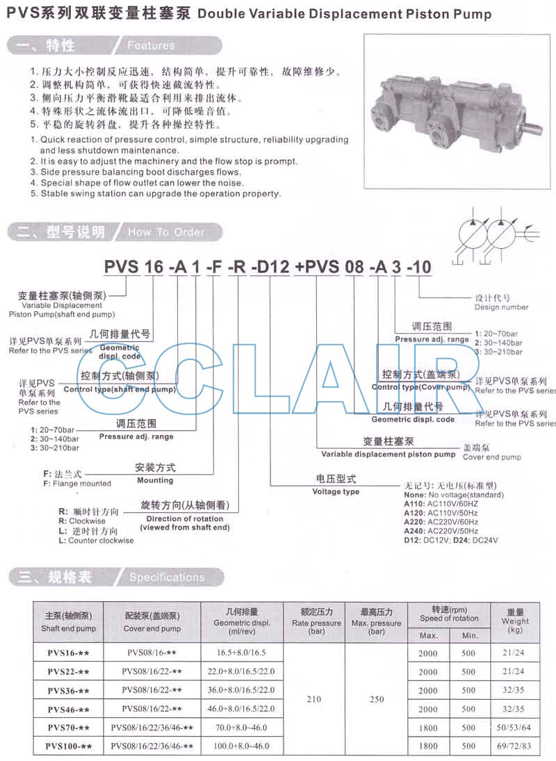 PVS16,PVS22,PVS36,PVS46,PVS70,PVS100,PVS16-A1-F-R-D12+PVS08-A3-10,PVS22-A1-F-R-D12+PVS08-A3-10,雙聯(lián)變量柱塞泵