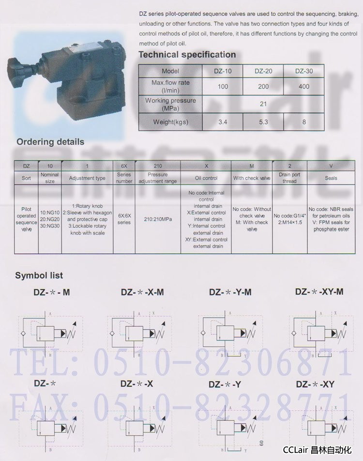 DZ-10,DZ-20,DZ-30,先導式順序閥