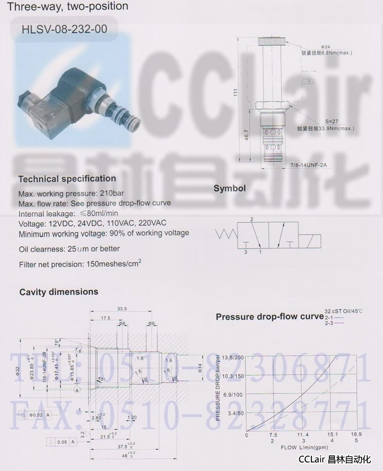 產(chǎn)品: 瀏覽次數(shù):555HLSV-08-232-00,二位三通電磁閥