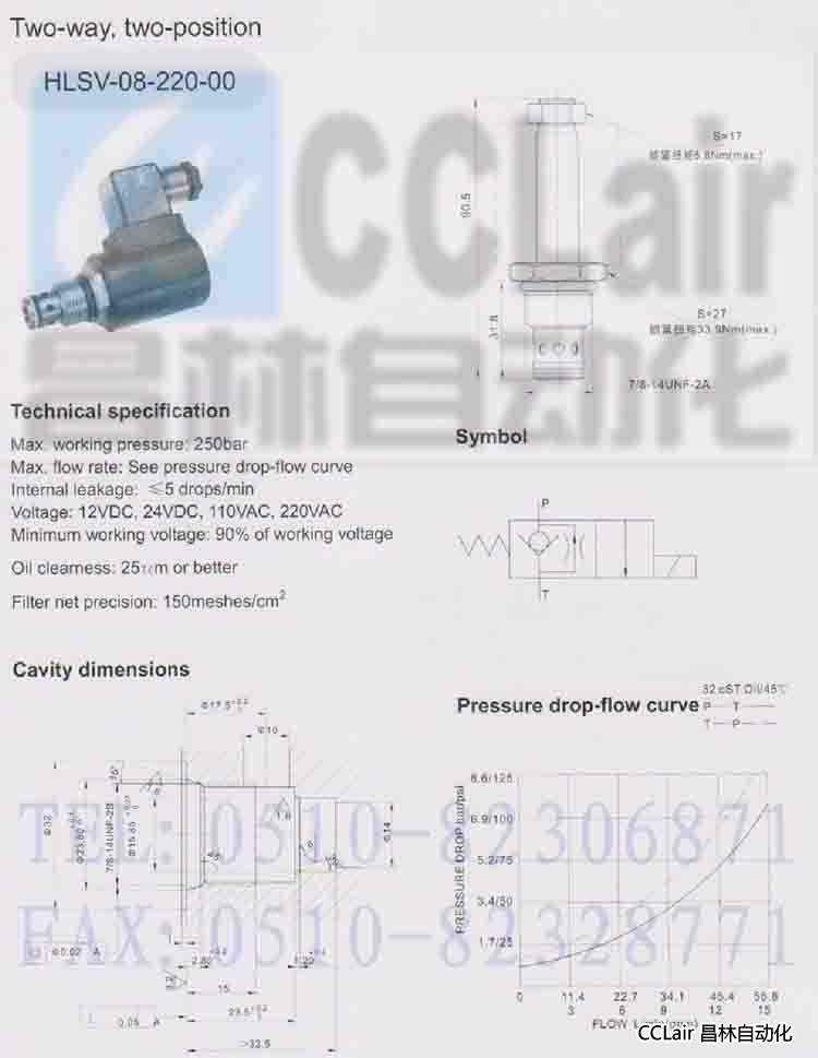 產(chǎn)品: 瀏覽次數(shù):661HLSV-08-220-00,二位二通電磁閥