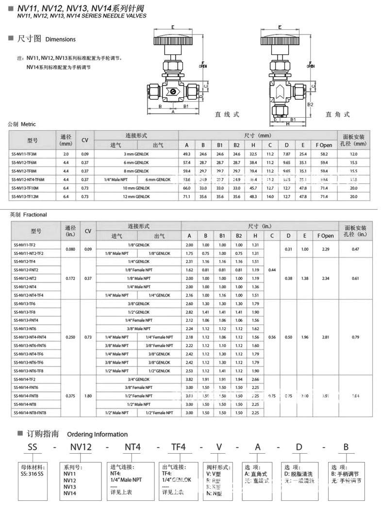 SS-NV11-TF3M,SS-NV12-TF6M,S-NV13-TF12M,SS-NV14-FNT8,不銹鋼針閥