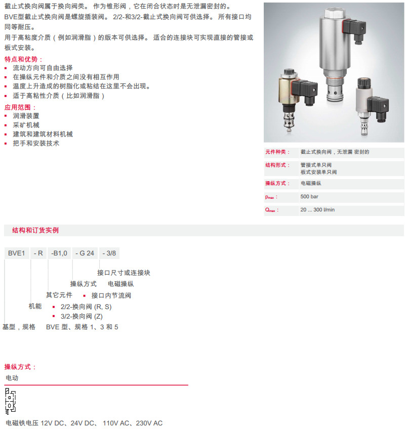 BVE1-R-B1.0-G24-3/8,BVE3-S-B1.0-G24-3/8,BVE5-Z-B1.0-G24-3/8,截止式換向閥