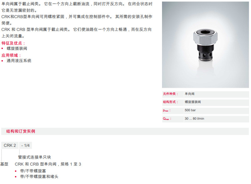 詳細(xì)信息 CRK1-1/4,CRB1-1/4,CRK2-1/4,CRB2-1/4,CRK3-1/4,單向閥