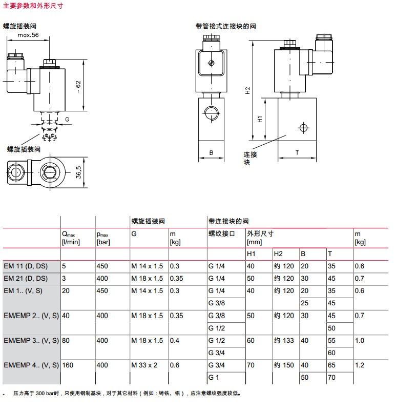EM21V-3/8-G24,EM21S-3/8-G24,EM11V-3/8-G12,EM11S-3/8-G12,通螺旋式換向閥