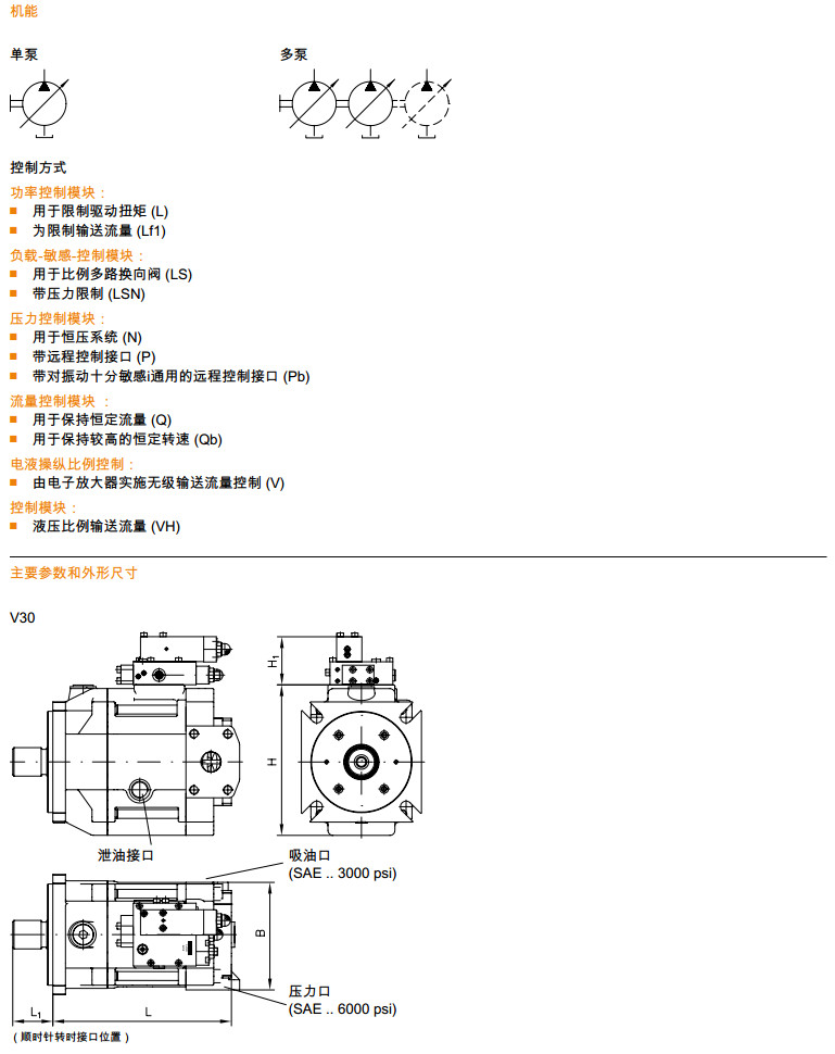 V30E-095LSFN-1,V30E-160RSFN-1,V30E-270RSFE-1,V30E-045LSFV-1,變量軸向柱塞泵