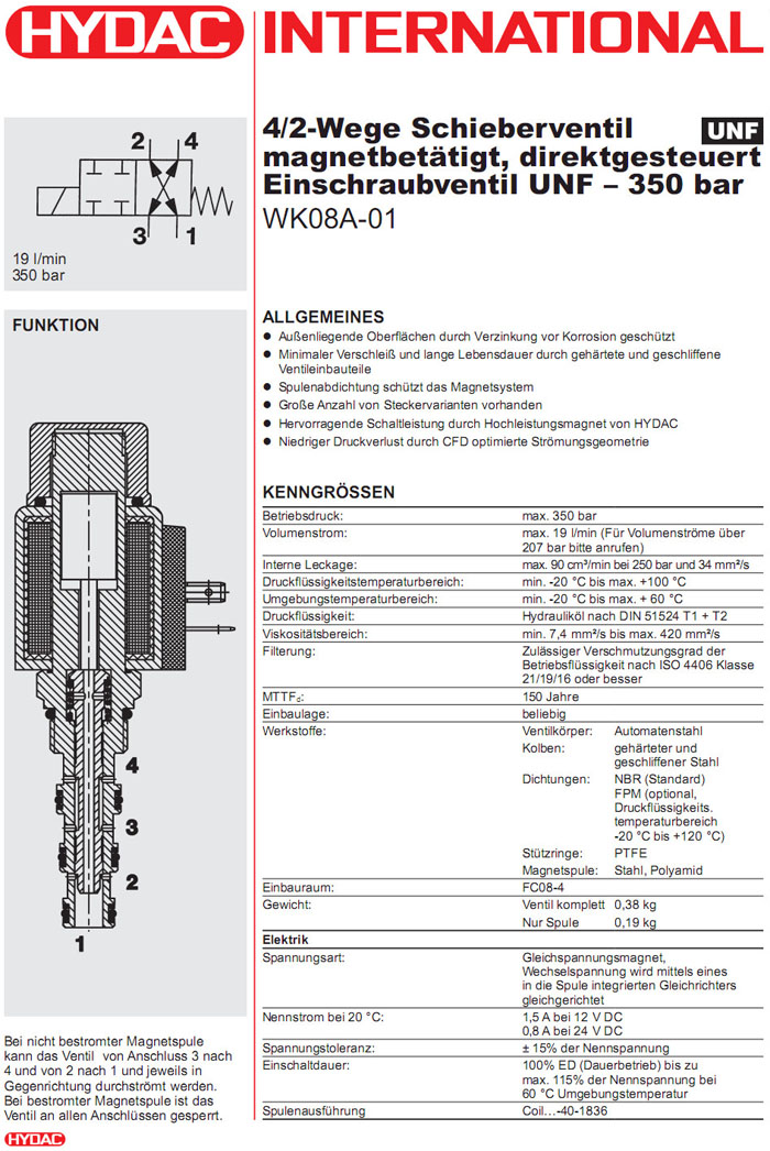 首頁 > 產(chǎn)品&解決方案 > WK08A-01-C-N-24DG,WK08A-01-C-N-230AG,HYDAC電磁4/2方向滑閥