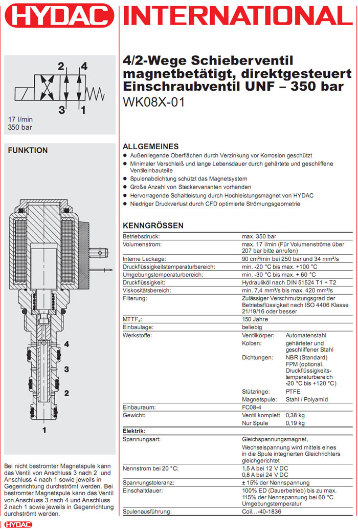 WK08X-01-C-N-24DG,WK08X-01-C-N-230AG,HYDAC電磁4/2方向滑閥
