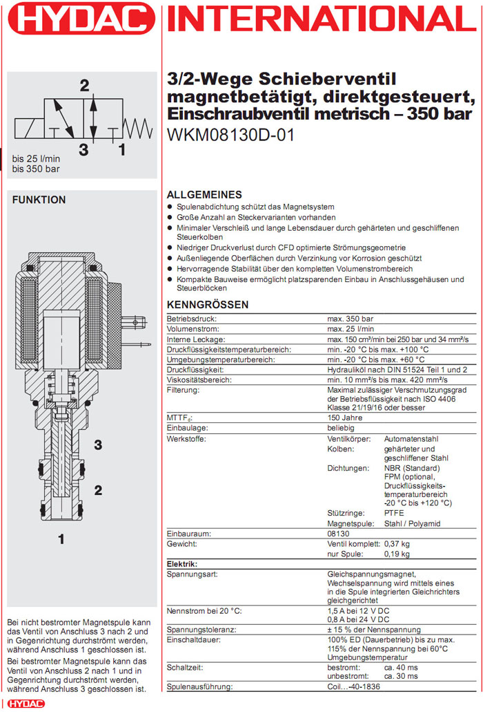 WKM08130D-01-C-N-24DG,WKM08130D-01-C-N-230AG,HYDAC二位三通方向滑閥