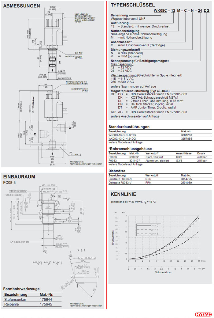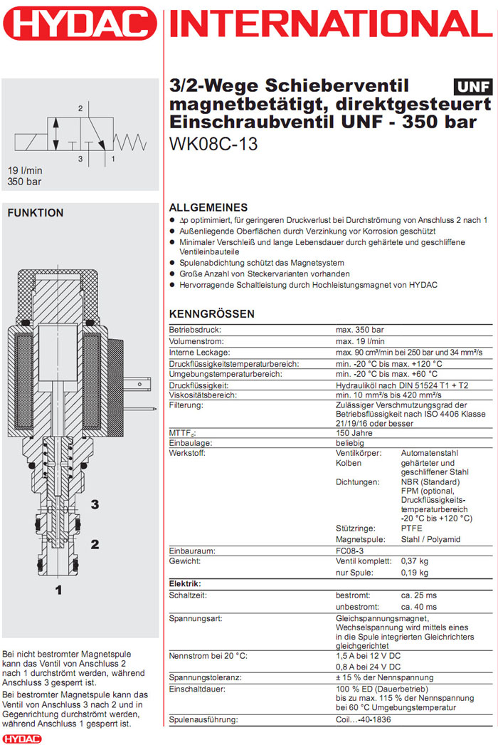 WK08C-13-C-N-12DG,WK08C-13-C-N-24DG,HYDAC二位三通方向滑閥
