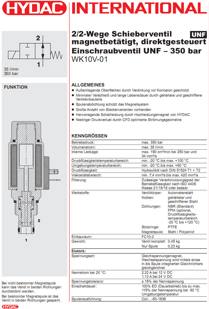 首頁 > 產(chǎn)品&解決方案 > WK10V-01-C-N-24DG,WK10V-01-C-N-230AG,HYDAC電磁2/2方向滑閥
