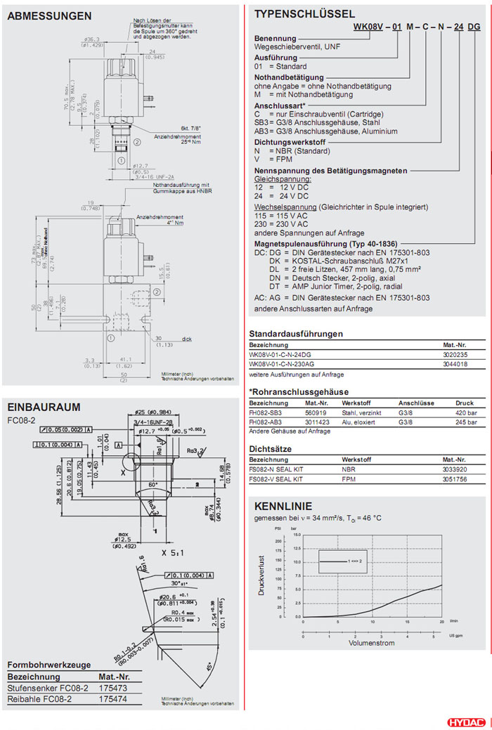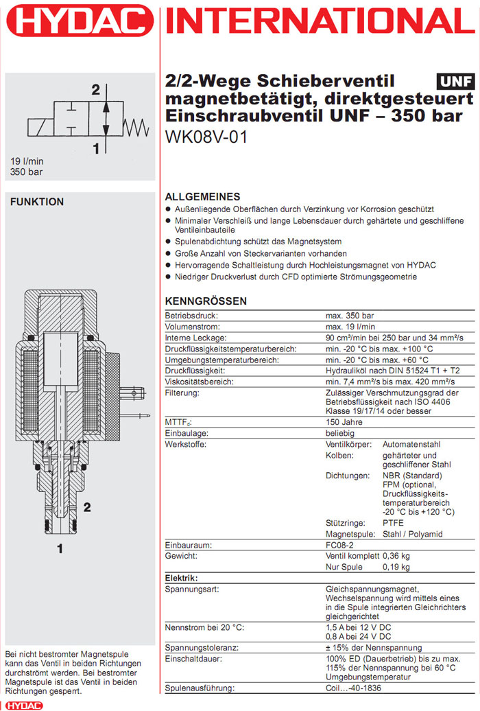 WK08V-01-C-N-24DG,WK08V-01-C-N-230AG,HYDAC電磁2/2方向滑閥