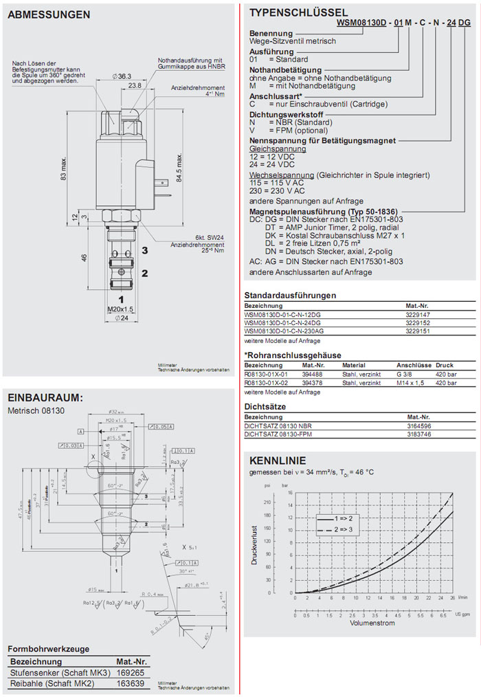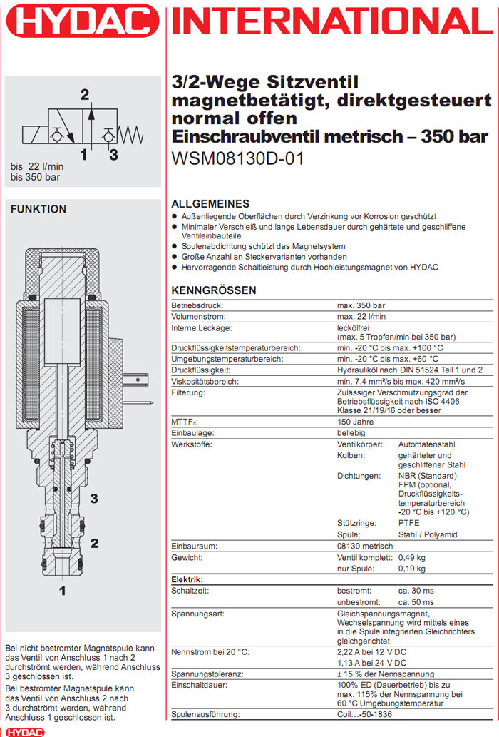 WSM08130D-01-C-N-12DG,WSM08130D-01-C-N-24DG,WSM08130D-01-C-N-230AG,HYDAC二位三通方向提升閥