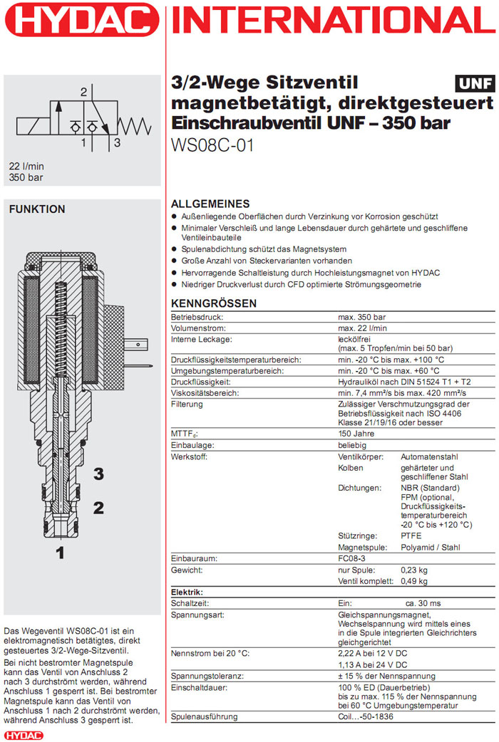 首頁 > 產(chǎn)品&解決方案 > WS08C-01-C-N-12DG,WS08C-01-C-N-24DG,HYDAC二位三通方向提升閥