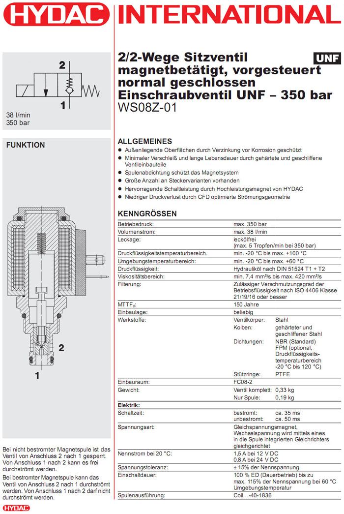 首頁 > 產(chǎn)品&解決方案 > WS08Z-01-C-N-24DG,WS08Z-01-C-N-230AG,HYDAC電磁2/2方向座閥