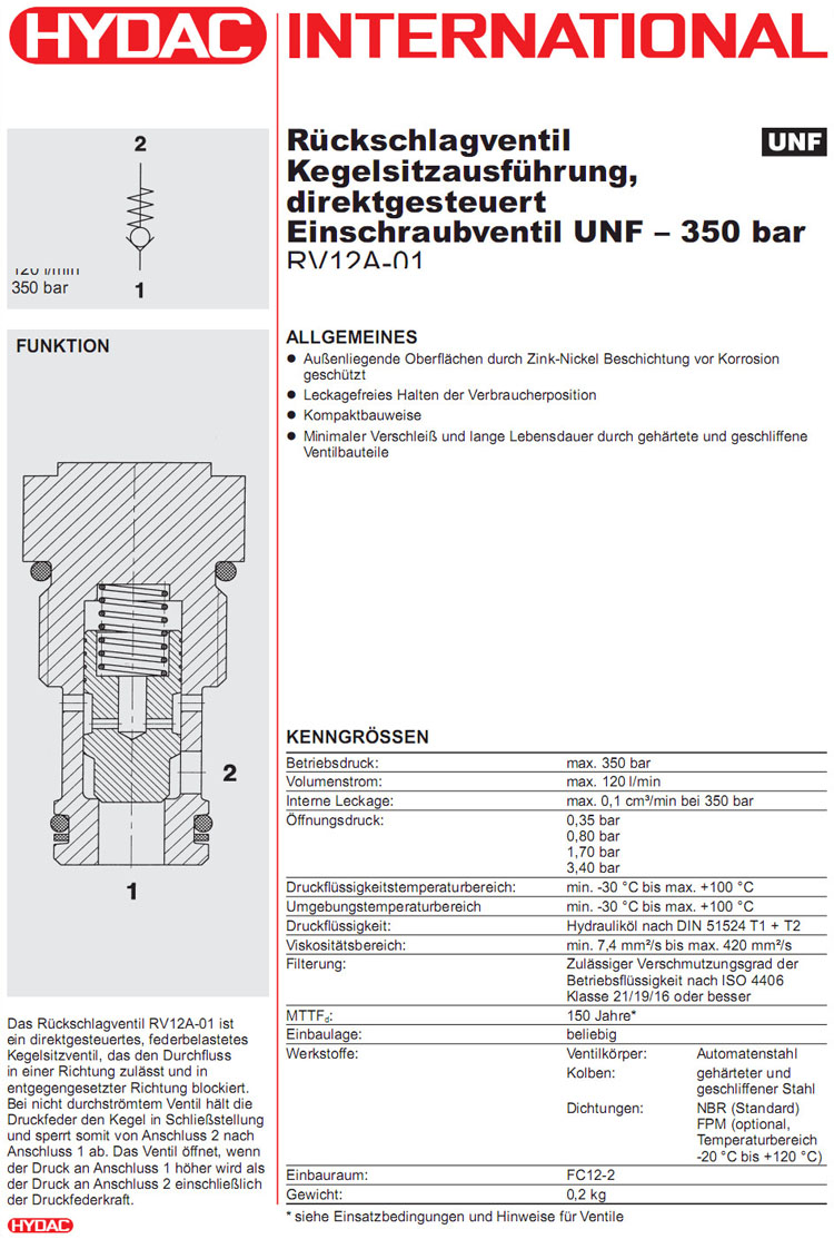 RV12A-01-C-N-05,RV12A-01-C-N-12,RV12A-01-C-N-25,RV12A-01-C-N-50,HYDAC止回閥